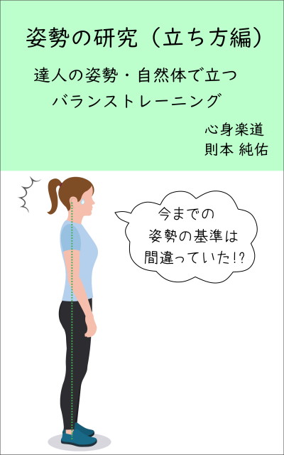 電子書籍新刊「姿勢の研究 上半身編 達人の姿勢・自然体で立つバランストレーニング」を出版しました。 地面に垂直の線に身体を合わせると正しい姿勢になるとされていますが、この基準に合わせても楽になったという感じはしないと思います。